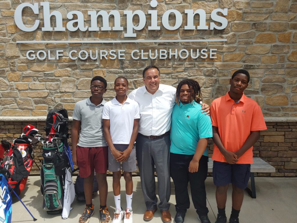 Golf Not Guns is a non-profit 501c3 community based mentor program that provides golf education to at-risk youth. Participants are exposed to the game of golf and matched with mentors that will promote healthy living and improve problem solving skills. Youth are taught the fundamentals and etiquette of golf while learning life-lessons from members of the golf community.